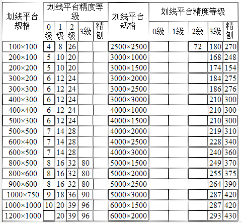 劃線平臺精度:按國家標準計量檢定規程執行,分別為0、1、2、3四個等級。